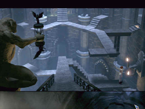 A new gargoyle appears, holding burning torches. Blow both of the torches out. The first gargoyle comes back. Put another coin in the gargoyle’s hand.