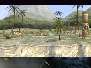 Go to the beach and turn the wheels of the cliff statue until the lower wheel is turned to the symbol of the tree. The upper wheel should be turned to the symbol of the ruins. Take the key.